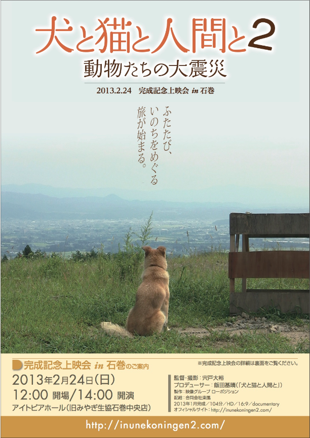 見てくださった方、これからご覧になる方、みなさんと一緒に『犬と猫と人間と2 動物たちの大震災』を育てていければと思っています。